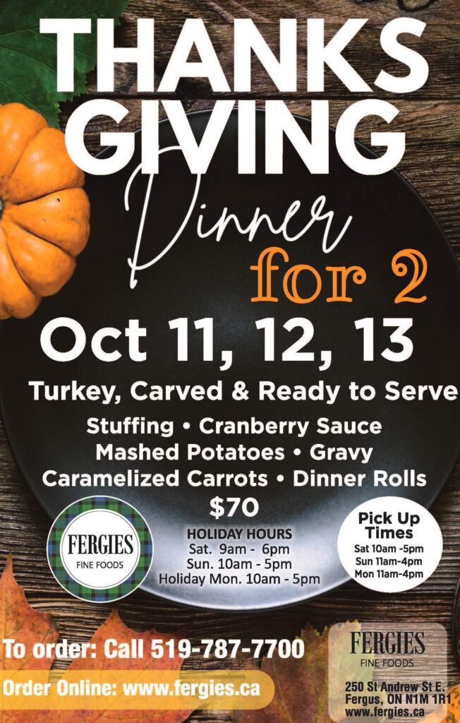 Located in the historic town of Fergus Ontario, Fergies Fine Foods is the perfect place for a quick bite to eat on the go or pre-made meals for you and your family. Our in-house baking is sure to hit the spot and our delicious dinners are a great way to spend more time with your family. We also provide catering to both small and large groups with a variety of different options.